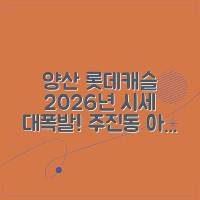 2026년 예상 시세 3가지 요인 경상남도 양산시 주진동에 위치한 양산롯데캐슬 아파트의 시세는 여러 요인에 의해 영향을 받습니다. 2026년 1월 시세를 전망할 때 주요하게 고려해야 할 세 가지 요인은 아래와 같습니다. 우선, 지역 인프라의 발전이 중요한 요소입니다. 양산시 내 도로망과 대중교통의 확장으로 입주자 수요가 증가할 것으로 예상됩니다. 이러한 발전은 부동산 가격에 긍정적인 영향을 미칠 것입니다. 요인 … Read more
